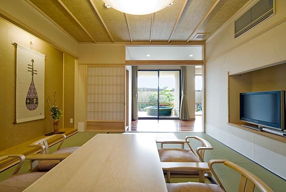 The private open-air bath is the standout feature of this suite. This spacious suite features 1 living room, 2 separate bedrooms and 1 bathroom with a bath and free toiletries. This suite is air-conditioned and has a seating area with a flat-screen TV, tatami, a tea and coffee maker, a wardrobe, as well as a safe deposit box. The unit has 2 beds and 4 futons.